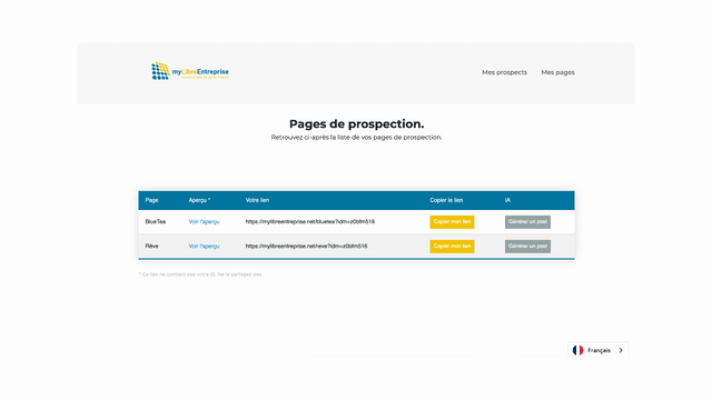 Discover the myLibreEntreprise prospecting pages